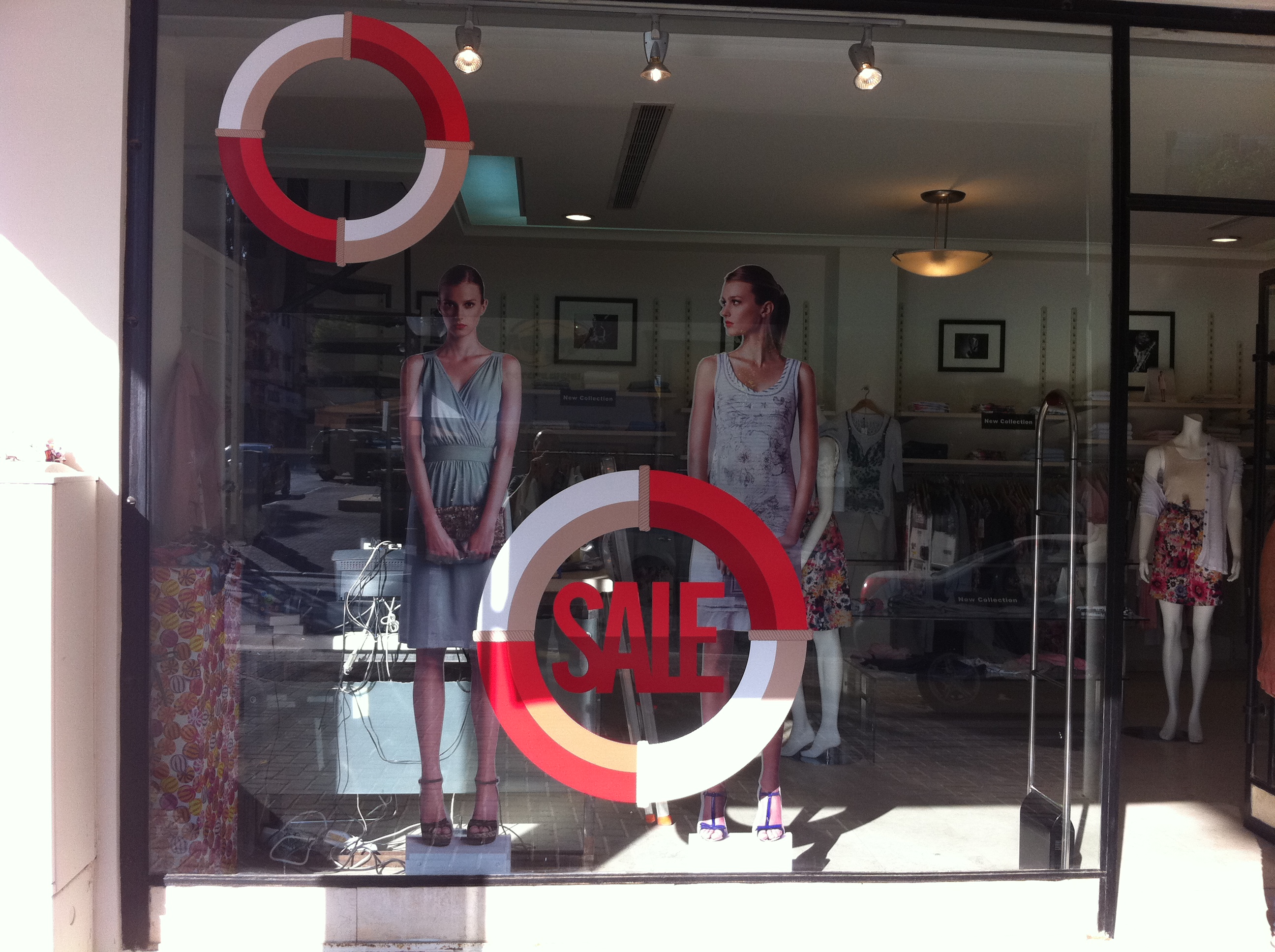 במקום בובות בחלון הראווה הודפסו קאפות דו צדדיות של הדוגמנית במספר תלבושות